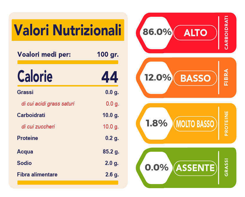 Sapore: Molto dolce e aromatico, con una punta aspra