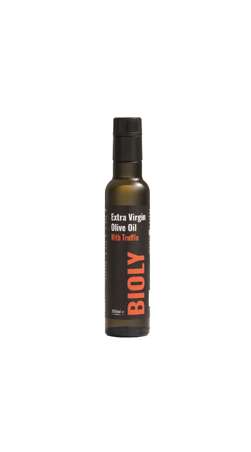 Ingredienti: Olio extravergine di oliva 97%, tartufo bianco essiccato 2,5%, aroma 0,5%