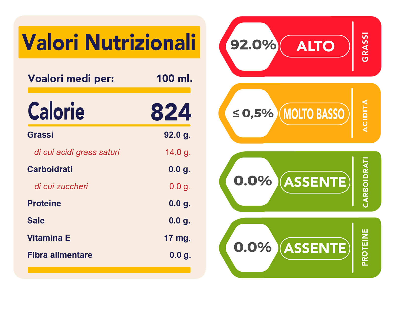 Acidità: ≤ 0,5%
